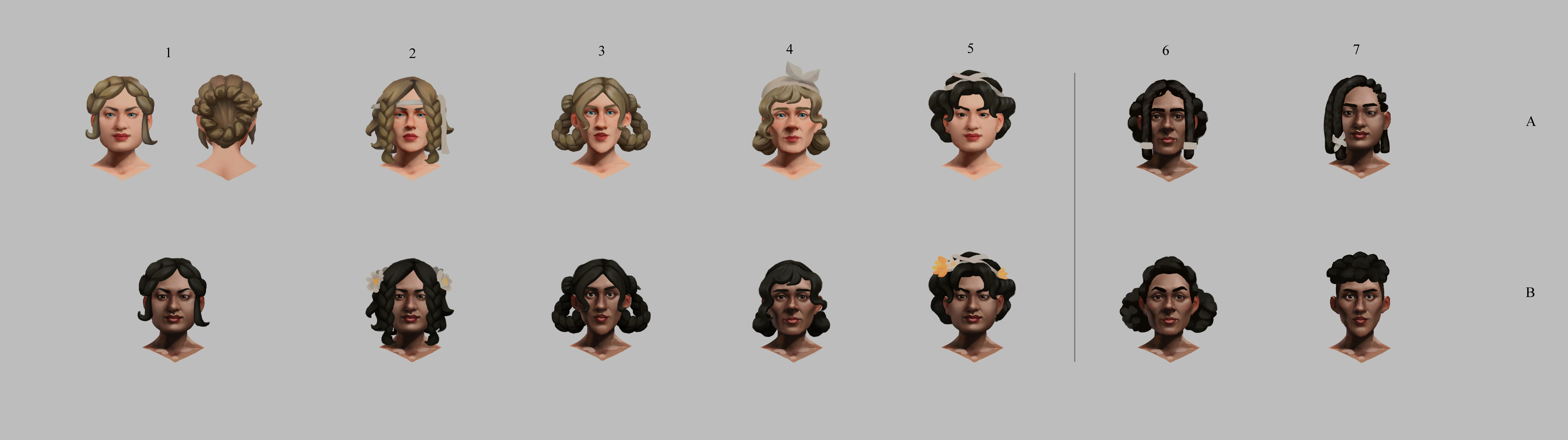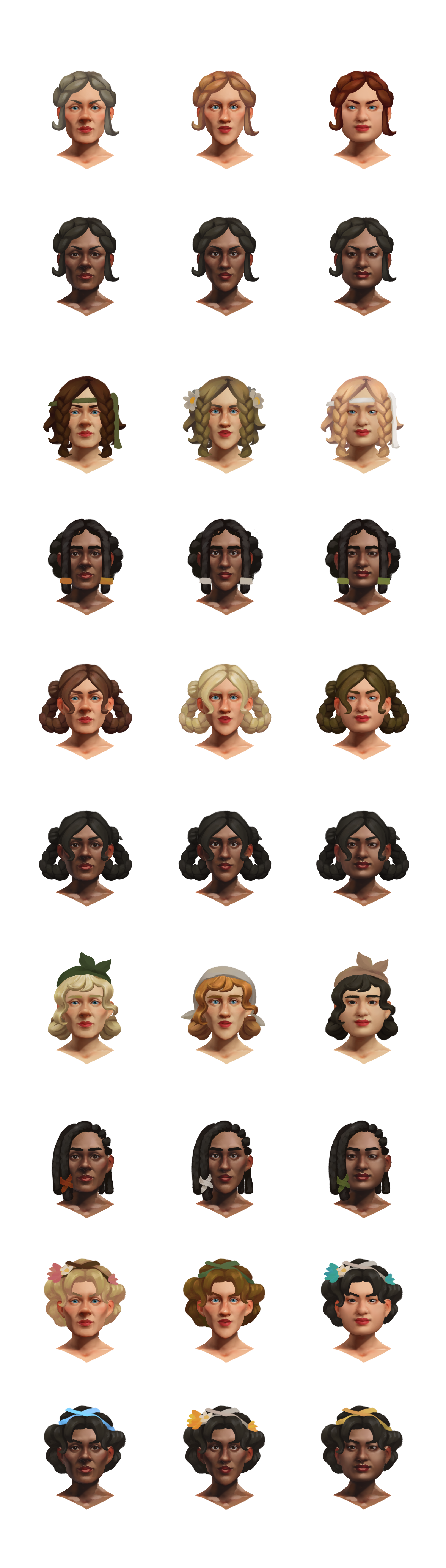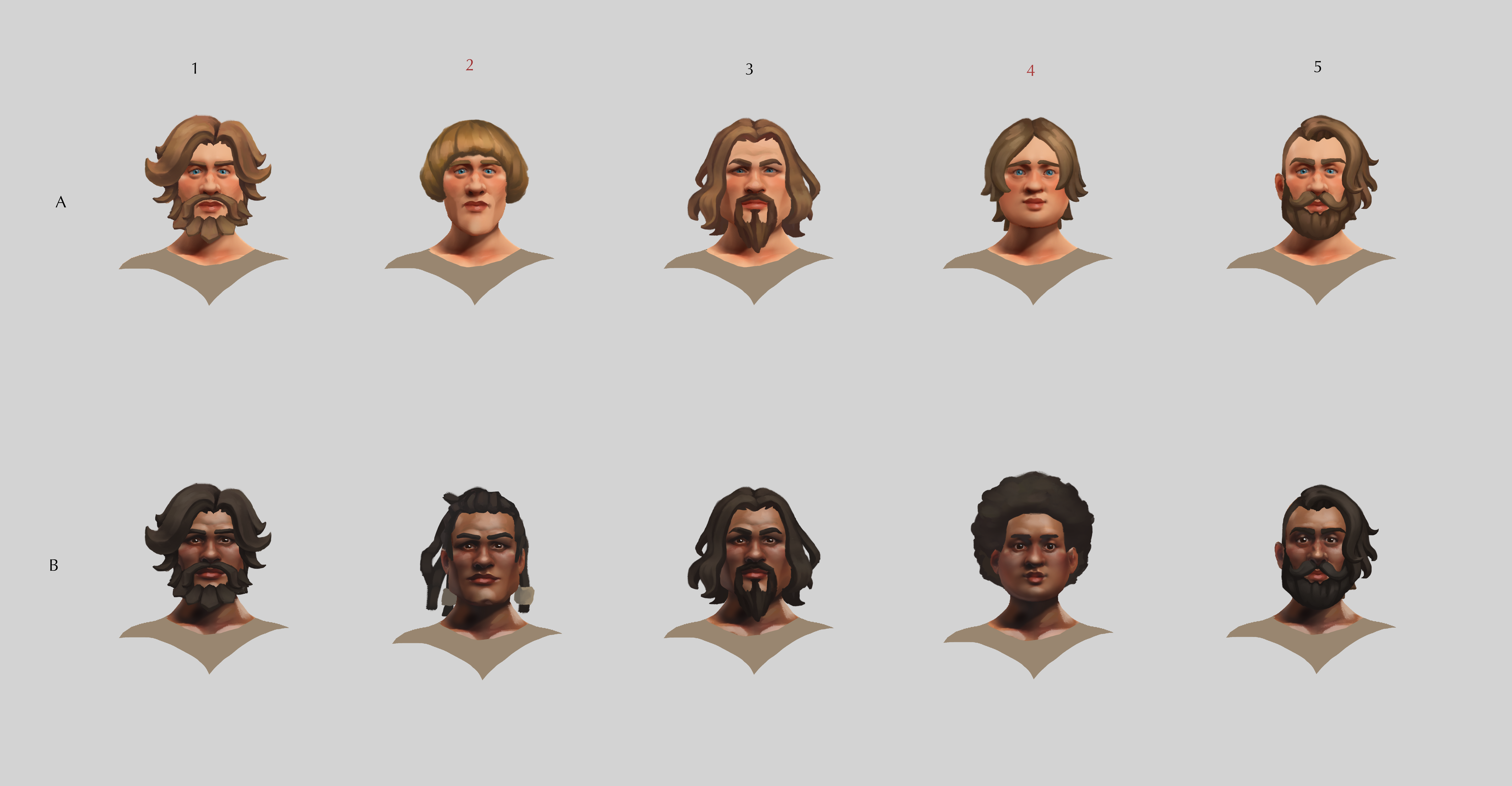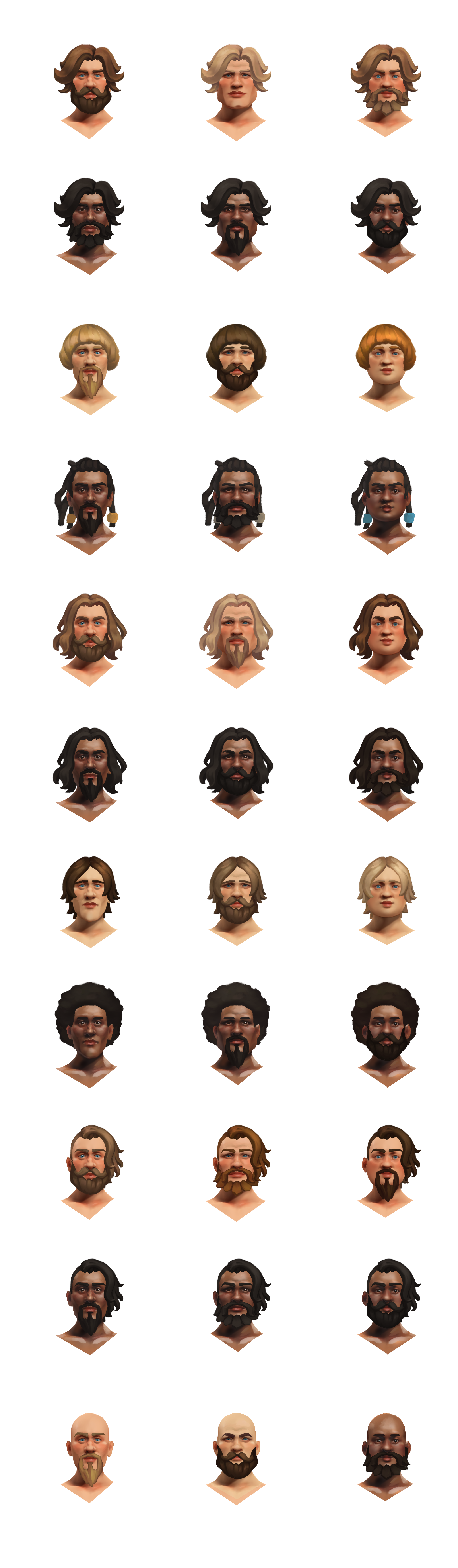 We wanted different faces for each randomly generated Pagonian. To save resources while still accounting for ethnicities, we needed faces which would look plausible no matter the skin tone. I also wanted to give each a different character so they would be distinguishable.