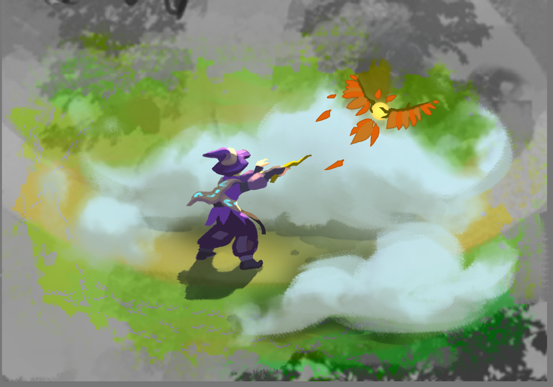 Fly – When exiting a collider (Land/Water) and not grounded. Also: When using the “Wings”-Item.